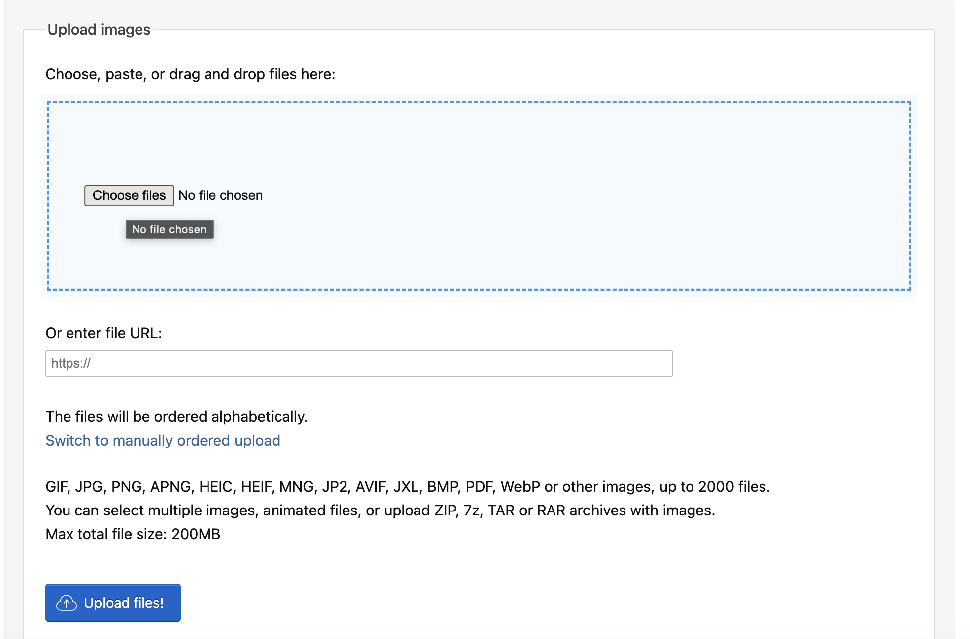 Step 6: Upload your images. Sepect ‘Choose files’, find your saved images and then press ‘Upload files!’