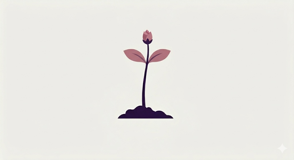 “Generate 4–5 static images showing different stages of the flower’s growth (seedling sprout \ bud \ blooming). These will be used to create a gif for a website image showing a flower growing. Use my brand colours Dark Violet:#31144D and Dusky Pink: #B87A88